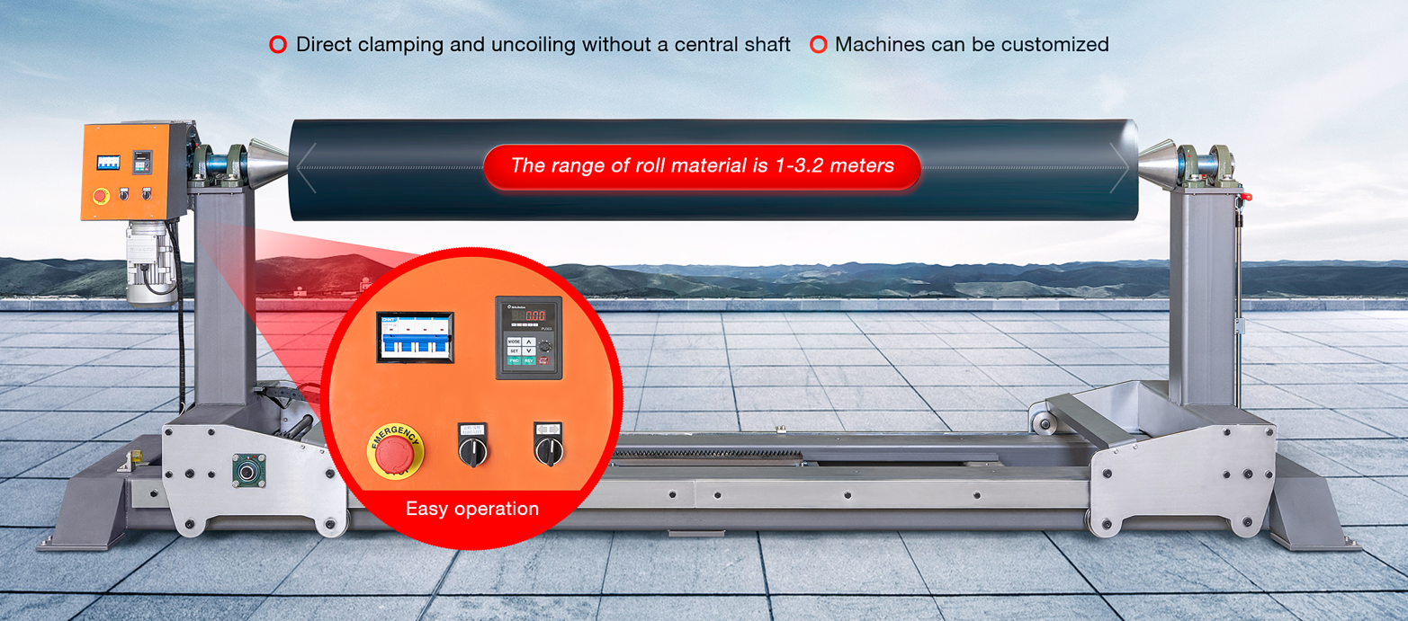 Enrollador de cinta transportadora sin eje, diseño de ancho ajustable