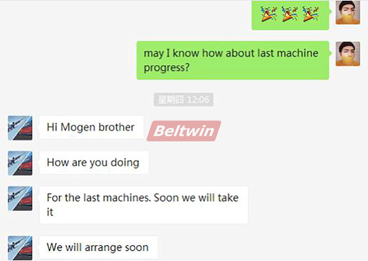 La empresa fue fundada en 2005 y tiene una amplia experiencia en filtración industrial y repuestos (rodamientos). En 2018, con el deseo de dar una nueva dimensión a sus actividades en el sector industrial, nació una nueva línea de producción de procesamiento de cinta transportadora. Establecer una nueva línea de producción de cintas transportadoras es un paso importante en la estrategia de desarrollo. Con una gran cantidad de materiales, mano de obra y equipos de juntas de cintas transportadoras de alta calidad, puede brindar servicios de calidad a los clientes locales. Al final decidieron buscar un proveedor en China.