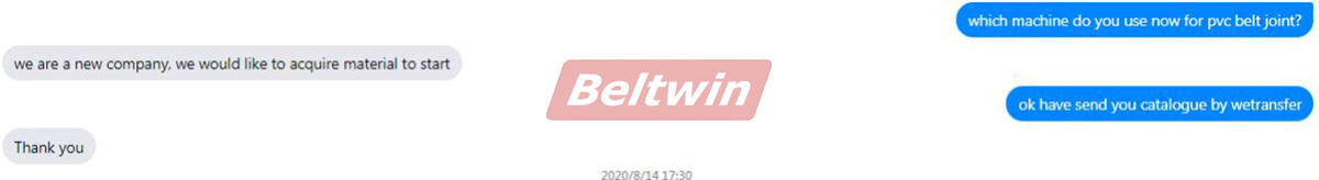 Enviamos nuestro catálogo de productos de máquina de unión de PVC PU y vulcanizador de banda de caucho.