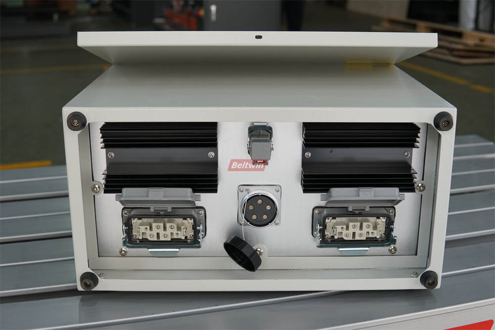 Una caja de control para 2 platinas. Después de ajustar la temperatura de calentamiento de ambas placas, el tiempo de permanencia, la temperatura de enfriamiento y la presión, todo el proceso de empalme se ejecutará automáticamente. Zumbador automático de fin de ciclo. Incluye 2 unidades de control e indicación de temperatura digital SHIMADEN, 1 temporizador, 2 amperímetros y un voltímetro. El mismo estándar que Almex, fácil de cambiar por su antiguo sistema de control de prensas vulcanizadoras Almex. Más flexible y ahorra costes. Temperatura precisa y lectura, componentes eléctricos aprobados por CE.