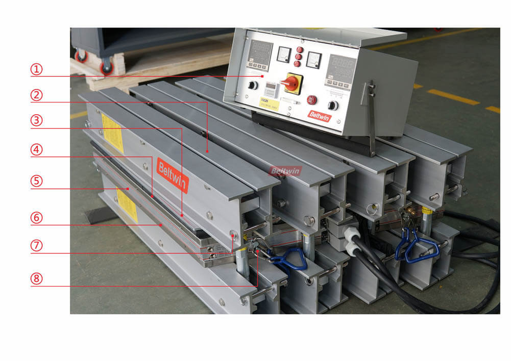 - La platina puede cubrir toda el área de empalme de la correa de goma durante el empalme y mantener la variación de +/- 5 grados Celsius en la temperatura de cocción de la superficie de la platina.