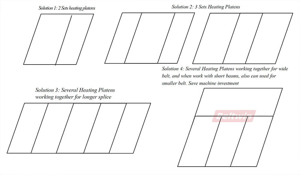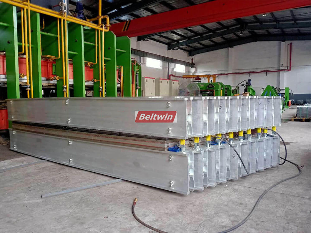 - Puede ofrecer una solución total, un trabajo de prensa de vulcanización con vigas adicionales puede usarse para varios anchos de banda.