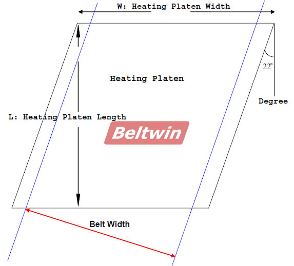 Placa Beltwin construida con tablones extruidos, elemento calefactor y aislamiento compuesto duradero. Cada placa se adapta a las irregularidades de la banda, asegurando toda el área de empalme. Platos disponibles, ya sea de diseño rómbico o rectangular. Temperatura máxima 325 °F (160 ℃)