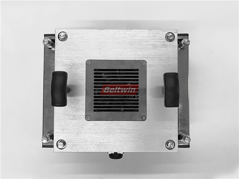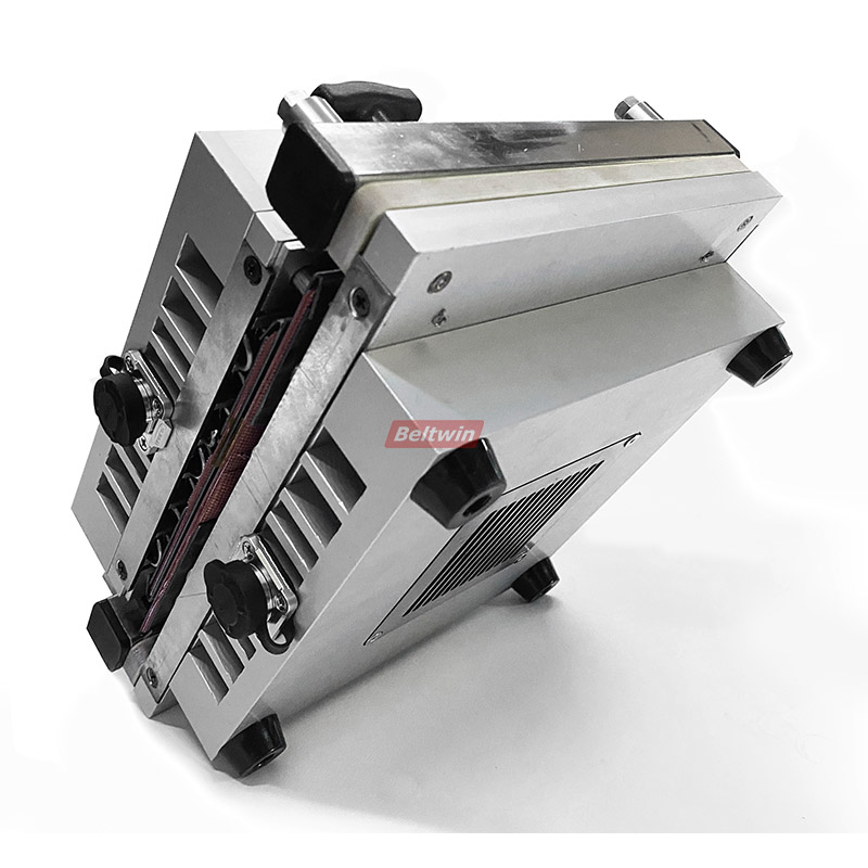 Máquina de prensa de empalme de cinta transportadora de PVC PU con sistema de enfriamiento por aire. Esta prensa enfriada por aire tiene todos los componentes integrados en la herramienta, lo que permite al usuario simplemente enchufarla a la electricidad y está lista para usar. Empalme rápido y es una prensa de empalme portátil, fácil de llevar a cualquier lugar.