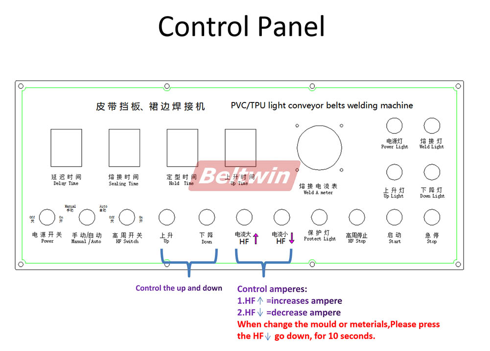 Nuestro soldador de alta frecuencia está hecho especialmente para la cinta transportadora que está hecha de PVC y TPU, cintas transportadoras, tacos en T y empujadores fabricados, paredes laterales.